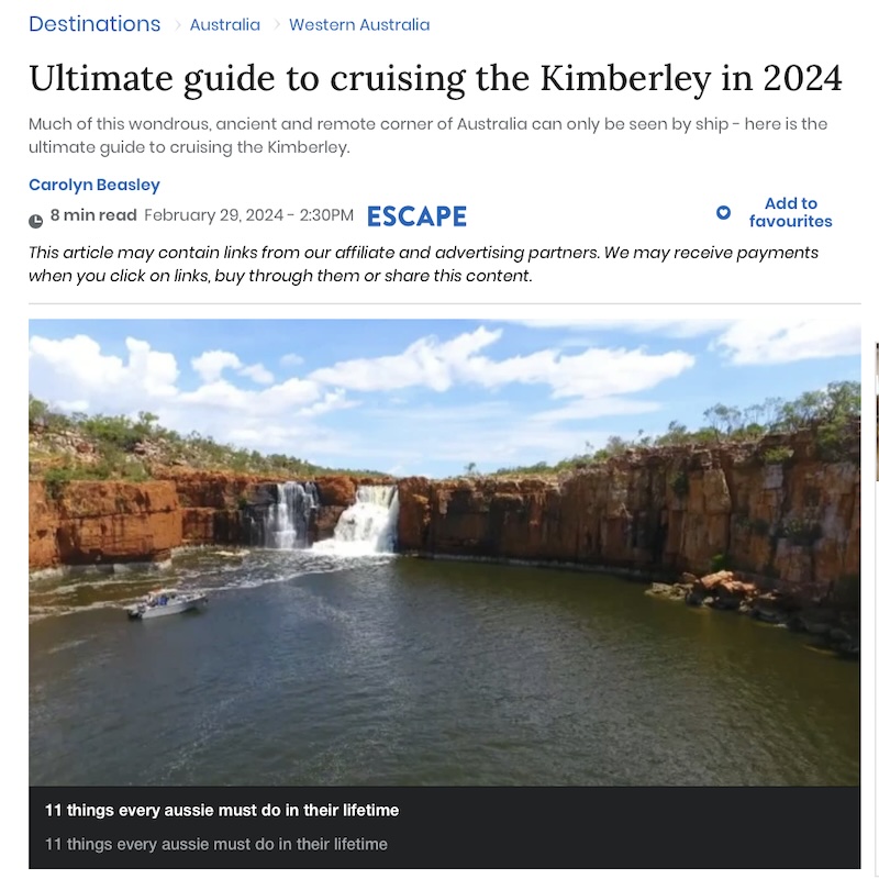 Secret No More. Kimberley cruising more popular than ever in 2020 - Issued 02 December 2019